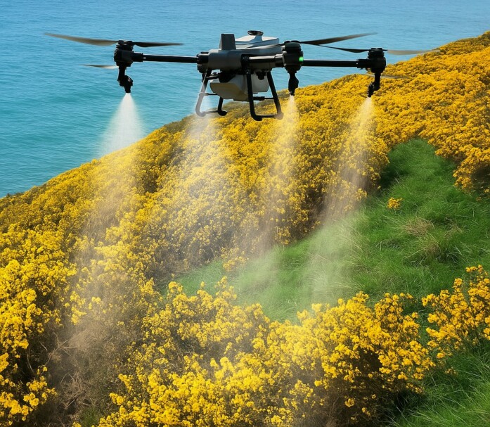 One of the most common requirements for drone spraying is weed control. We specialise in targeting invasive species such as gorse, broom, and blackberry with precision spot spraying techniques. Our drones can efficiently cover large areas of land, ensuring effective and thorough control of these stubborn weeds.