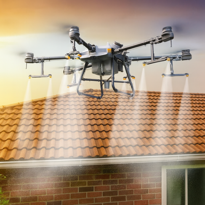 • Chemical Application: Equipped with soft-wash sprayers, drones apply eco-friendly cleaning solutions using controlled, low-pressure systems.